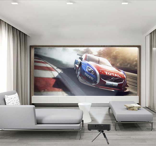 The projector weighs 497g and measures 150mm*150mm*41mm, making it easy to carry